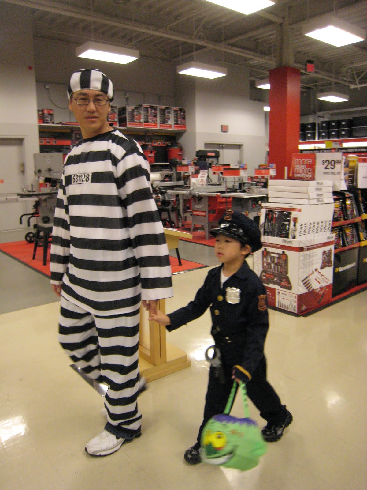 Trick or treat! If you're not being good, I'll have to come handcuff you and take you to jail like my Dad.