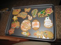 Today, me and Daddy baked some cookies, decorated them with frosting and sprinkles and then delivered them to some relatives and friends. I got to pick the shapes we made. The trains and snowman came out pretty good but some of the smaller cookies didn't look right when they came out of the oven.